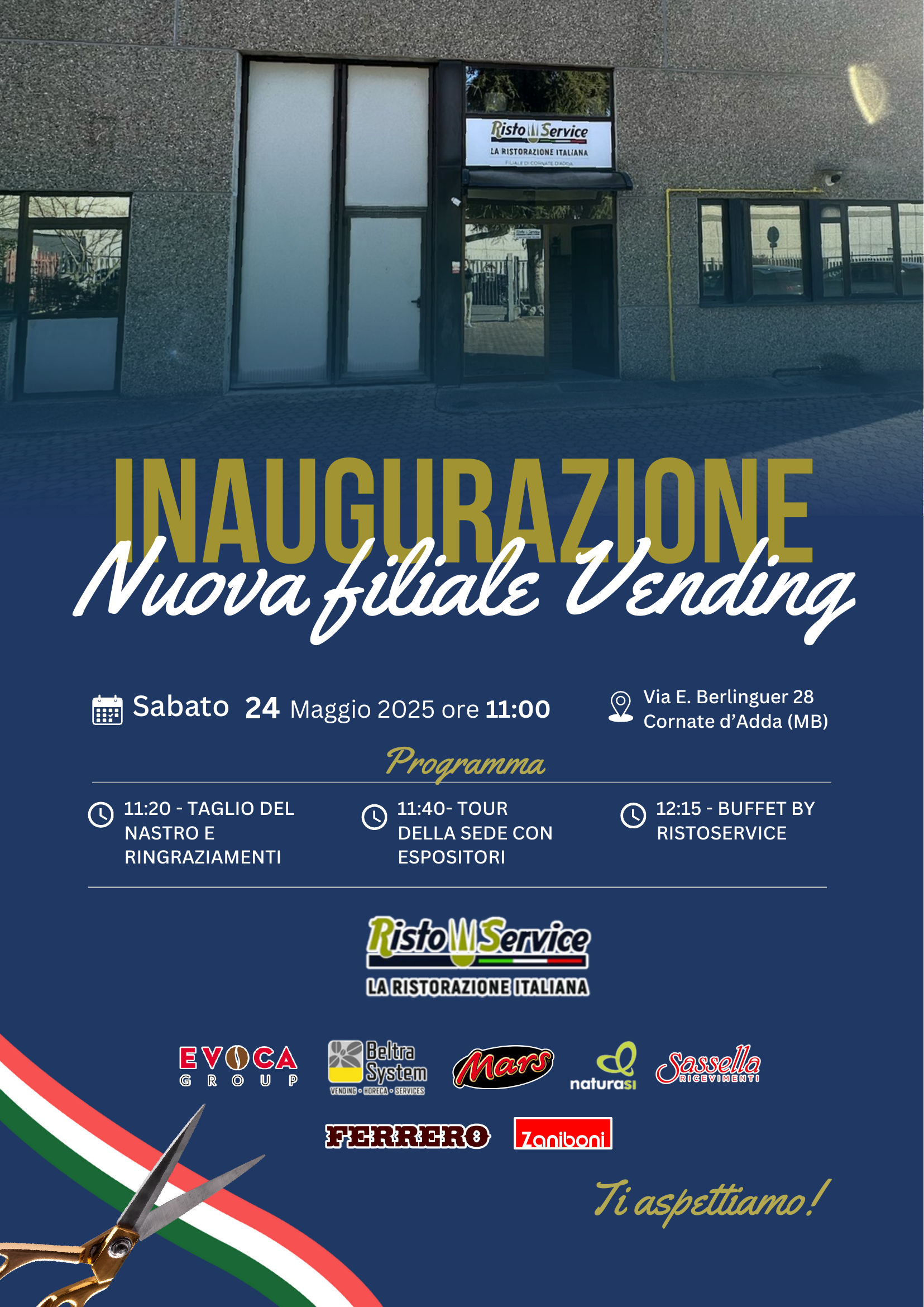 We are pleased to announce the opening of our new Vending Branch in Cornate d’Adda, a key step in Ristoservice’s growth path.